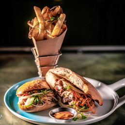 At SPIN, guests can indulge in a variety of delectable desserts such as Churros with Guajillo chocolate sauce, Chocolate Chip Cookies with Maldon Sea Salt, and Loaded Tots. The menu also features savory options like Drunken Wings, House Fries, and Sliders with Fries, ensuring there's something for everyone's taste buds.